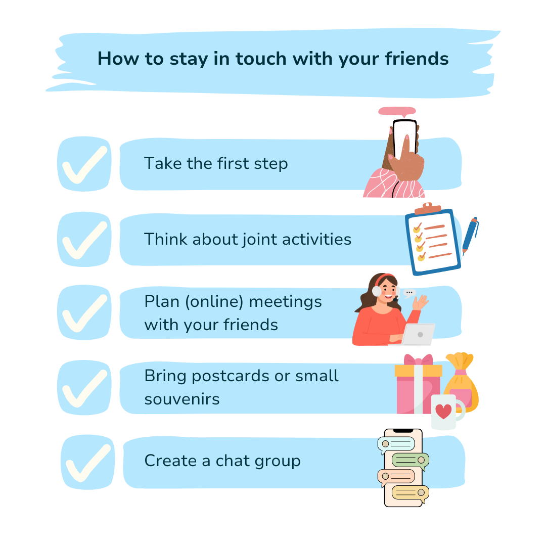 Sometimes it can happen that everyone assumes that the other person will get in touch. And in the end, nobody does and it stays quiet, even though you actually want to stay in touch.